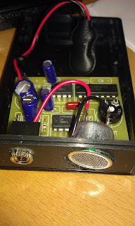 Over the weekend I started to make my bat / rat detector. I made a few mistakes like soldering the wrong components into the board but fortunately I had ordered extras so I didn't have to give up when this happened! It was fairly easy to melt the solder again and remove the wrong components. I just hope that I haven't overheated any components while soldering, some had 8 contact points through the board and I was pretty slow at soldering, and metal conducts heat very well. If I have runied some components, I hope I have enough spares to do them again.